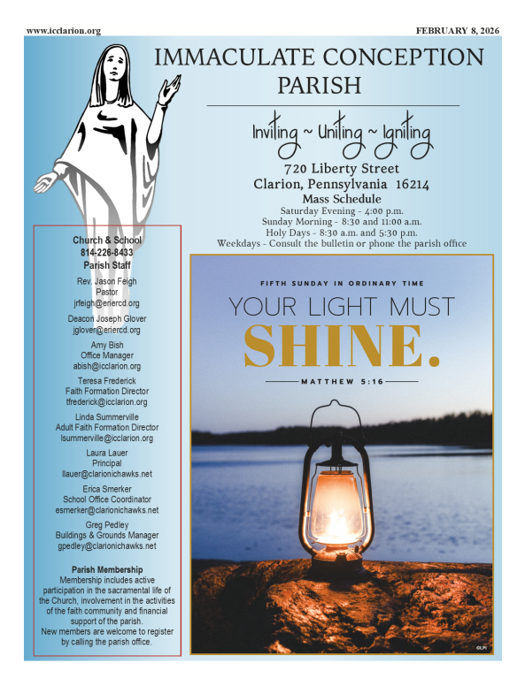 - Next Sunday: Is 58:7-10 / Ps 112:4-5, 6-7, 8-9 / 1 Cor 2:1-5 / Mt 5:13-16