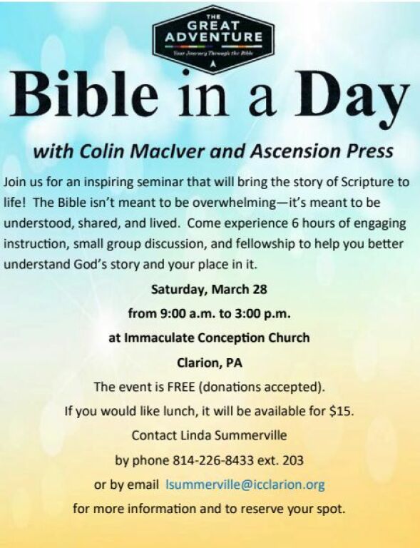 For more information, contact Deacon Joe, jglover@eriercd.org.
